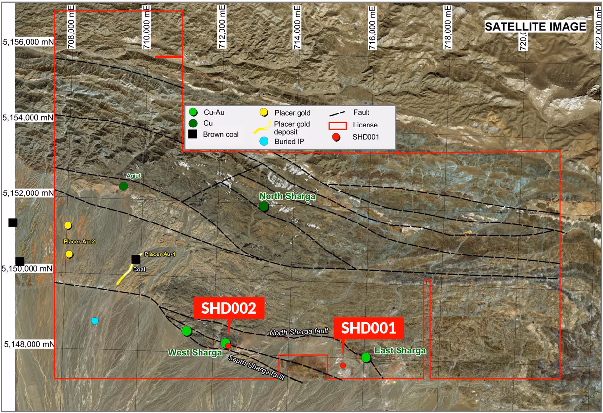 Aranjin’s flagship asset in Mongolia is the Sharga Copper Project, with an exploration license covering around 9000 hectares of land in the Gobi Altai Province. Earlier exploration at Sharga defined three high grade copper targets, and the type of electromagnetic anomalies typical of massive copper sulphides. Aranjin’s drilling results from December 2021 were extremely encouraging, showing substantial mineralization from six drill holes, including a result of 15.4 meters at 1.33% Copper and 0.94 g/t Gold.